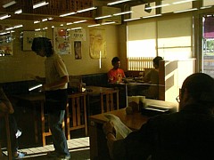 1階の麺類「飩久」は11時〜15時半(休日は20時まで)・無休、2階のレストラン「もく」(大あさりフライ定食980円はお薦め)は11〜21時・水曜休みで喫茶も兼ねる、駐車場にある「らーめん狸」は11〜15時と17時〜深夜2時・無休。うどん・蕎麦・中華・洋食まで選択肢は多い。特に外見の良くない「狸」の大あさりはお薦め。 | |