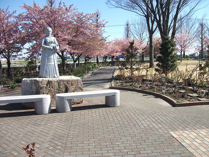 美しすぎる気もする荻野吟子像。明治12年に生まれた日本最初の女医、女性人権運動家としても知られる。