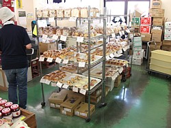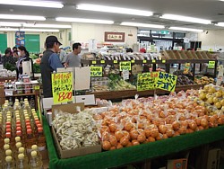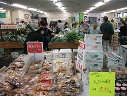 ● 物産センターは9時半〜18時、農産品直売所は10時〜18時。地場産品も野菜類も安くて豊富、近隣の買出し客も多い。