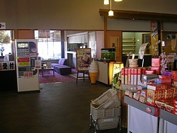 ホテル(温泉施設)のフロント横に売店あり(10時〜20時半)、問屋経由の既製品がメインで魅力に乏しい。休日には多目的ホールの前に産直野菜の出店あり、冬以外なら地域性の豊かな山菜やキノコが手に入りそうだ。 | |