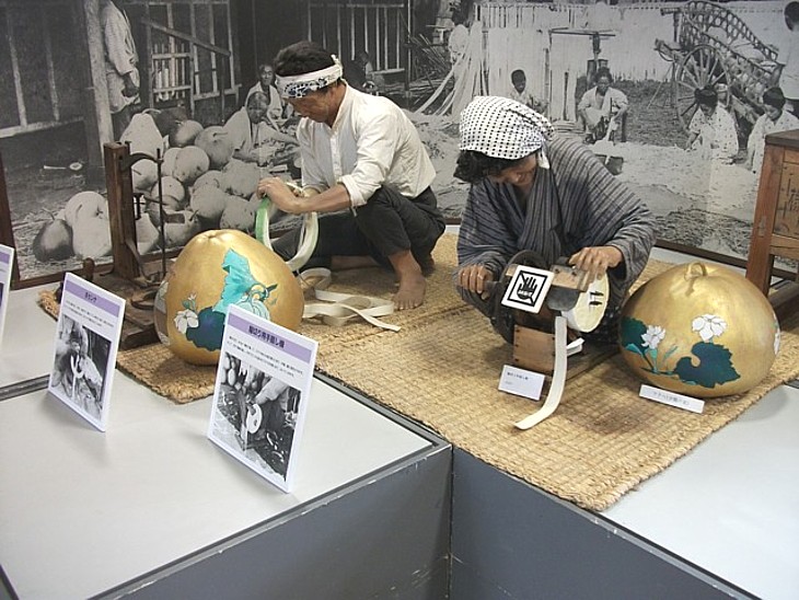 名産の「かんぴょう」を加工する姿を模した人形と歴史を物語るパネル。本当に良く出来ている。