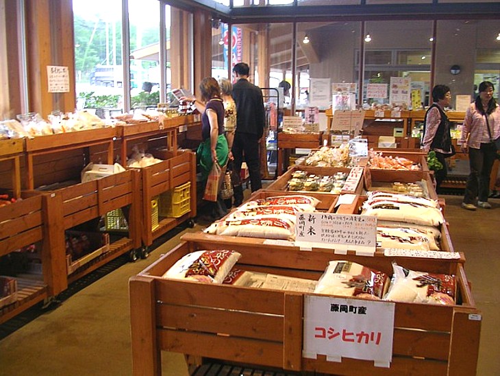 特産はサツマイモ・玉ネギ・キュウリ・ナス・葉ショウガなど、藤岡産コシヒカリも並んでいる。