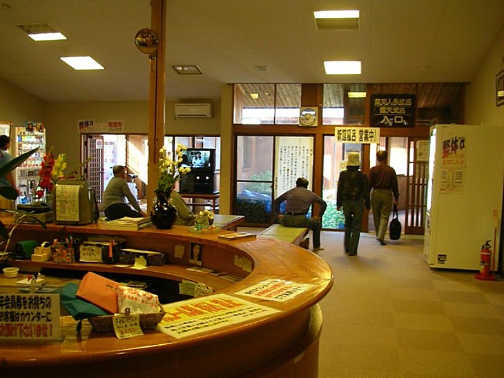 ローカル色が残る温泉のカウンター。