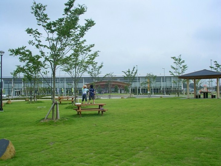 宮城県の道の駅「みなみかた」 すぐ裏手に広がる登米市分庁舎前の芝生から。
