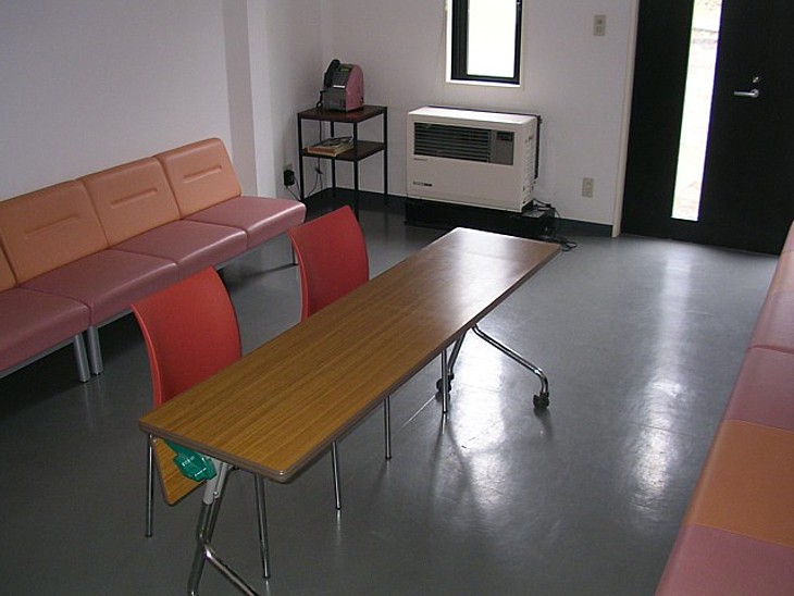 野菜売場の奥にある休憩コーナー。利用価値が低いから倉庫にでもする方がマシだろうと思う。