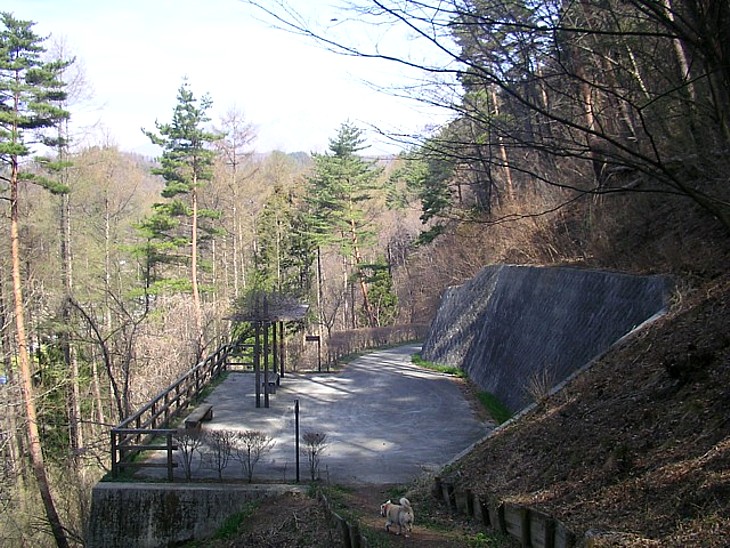 舗装された遊歩道先の折り返し地点にある休憩スペース。ここから頂上の公園までは狭くて急な山道が続く。