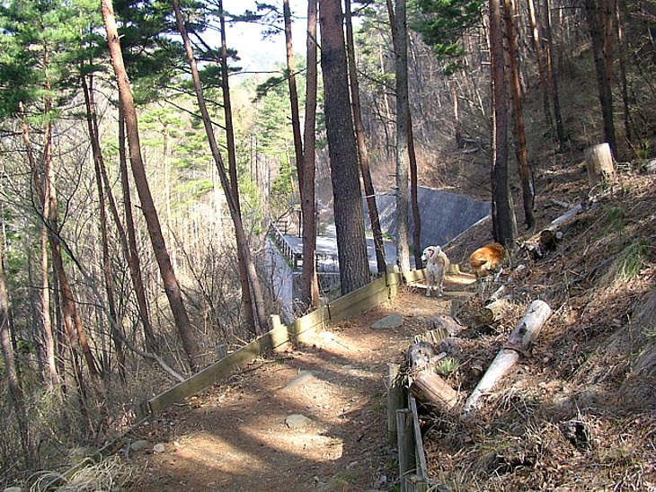 食事処横から花の森公園まで15分ほど、急傾斜もあるが休日以外なら犬のノーリードも特に問題なし。