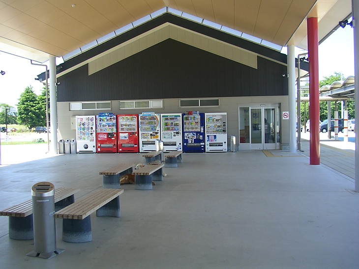 イベントプラザにはベンチを置きトイレの横には自販機、暖かな季節は休憩所として利用できる。