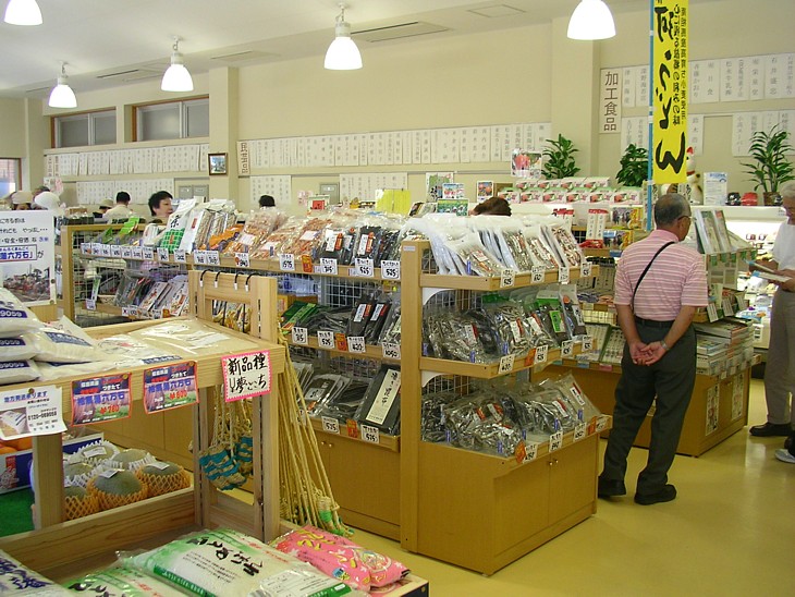 海までは直線距離で約3km、海産物の加工品も(多くはないが)各種並べられ彩を添えている。
