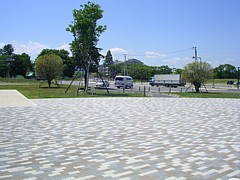 裏手の大型車用駐車場の横にも結構広い緑地がある。更に裏手には公園もあり、一回りすれば散歩コースとしては充分。 | |