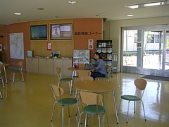 情報コーナーを含めて24時間利用できる(ギャラリー部分は17時まで)。テーブル類や情報設備も充実しており、使いやすい。 | |