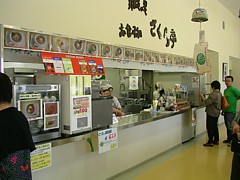 ● 食事処が軽食を兼ねている。休日には屋台なども出るが、自販機か物産館でお気に入りを購入して広い休憩コーナーを利用 | |