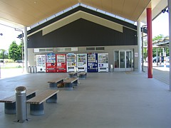 P泊には駅裏に分離された大型車用のスペースがベストだが、トラックの停泊がどの程度か不明。訪問した時には少なかった。駐車場の100m南に24時間コンビニ、更に200m先に「すき家」、食品スーパーは南1kmの旧道沿いにある。 | |