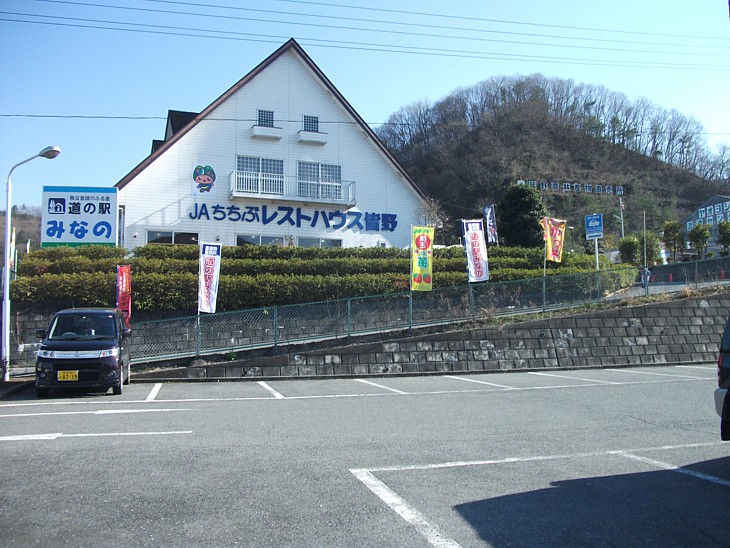 国道から県道に分岐してすると駐車場への進入路。手前が「ガスト」のP、坂道を登ると左にメインPがある。