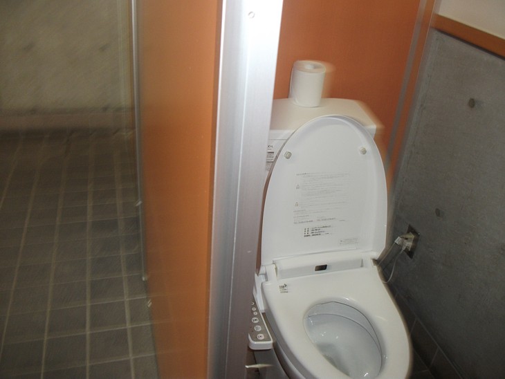 洋式便器は全て温水洗浄便座を完備。駅舎内の旧トイレスペースは改装されて案内コーナーになった。