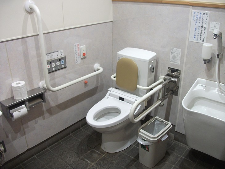 多機能トイレの設備も良く整っている。駅舎内の旧トイレスペースは改装されて案内コーナーになった。