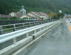 温泉施設の終業(21時)後は静寂に包まれる。夜間の国道41号の交通量はとても少ない。 | |