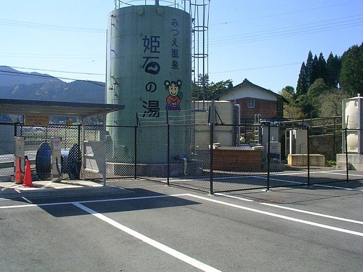 国道沿いの源泉タンク。温泉スタンドもあるらしい。無色透明のアルカリ性単純泉で源泉温度は35.7℃。