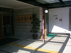 ● 駅舎に並ぶ姫石(ひめし)の湯は11時〜20時(受付は19時半)・火曜休、露天・サウナ付き、加水・加温・循環殺菌、700円。 |