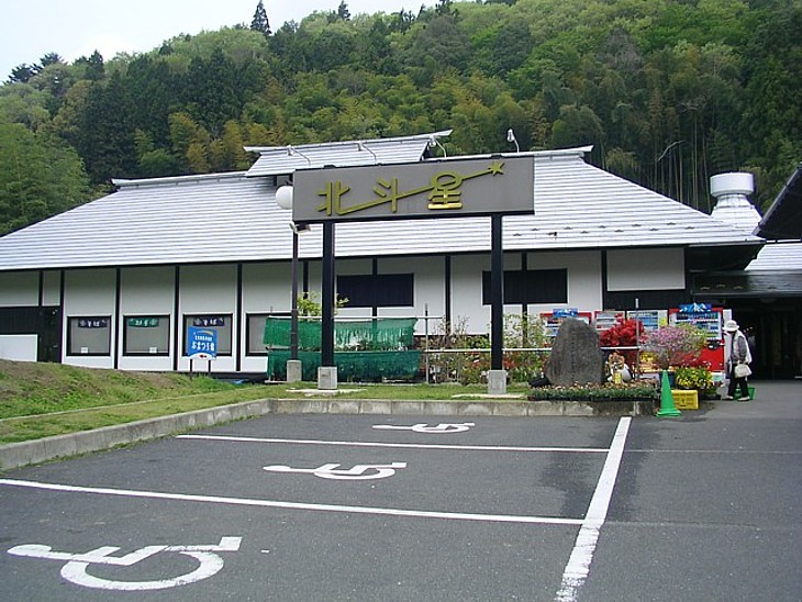 土産物売場の右がトイレへの通路。駅の愛称は「ふるさと館北斗星」、茨城の北部の意味か。