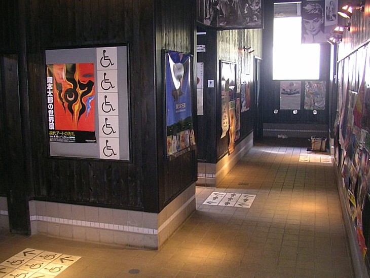 黒い壁に古いポスターはレトロな雰囲気を強調しているらしいがレトロにする理由が判らない(