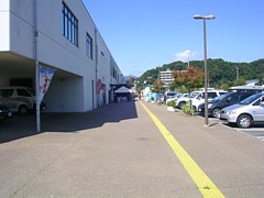 公称は大型車8台+普通車168台、敷地が接した魚市場の駐車場も利用できるから公称の数倍程度の収容力がある。 |