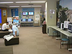 10〜16時。海洋深層水を使ったソフトクリームや自販機で飲物を買って海辺の芝生(一部工事中)で過ごすのも良い。 |