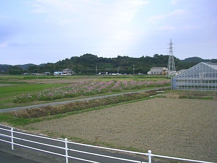 駅の裏は農地で周辺には農業体験施設や果実のもぎ取りがセールスポイントの農園も点在している。