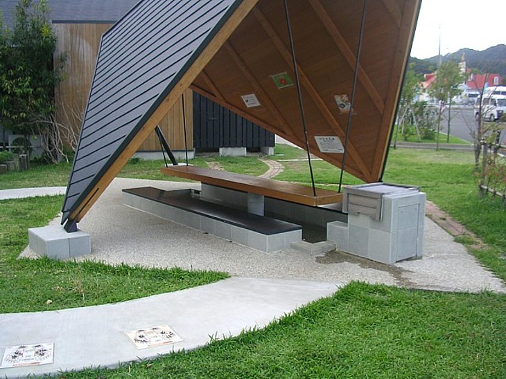 無料足湯コーナーは遊歩道とセットで楽しめる。もちろん沸し湯だが10〜17時頃まで利用できる。