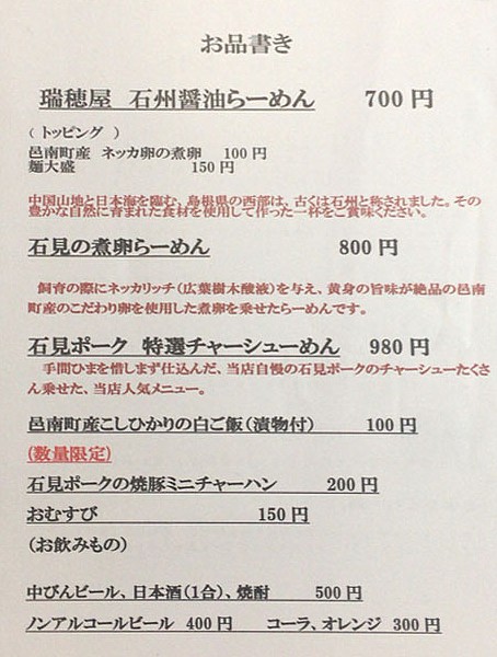 「ラーメン瑞穂屋」10〜20時・火曜休、メニュー画像を参考に。 |