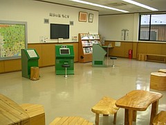 情報コーナーを兼ねているが実質は食堂で、割り箸や調味料も置いてあるため何か注文しないと座りにくい。困った状態だ。 | |