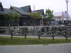 川沿いの遊歩道で散歩できる。隣接して広いグラウンドがあり、使われていなければノーリードで遊ばせるのも可能。 | |