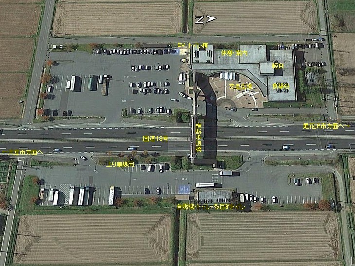 片側二車線の13号バイパス沿いの駅。大型車が多くて混雑するが、機能は文句なしに充実している。