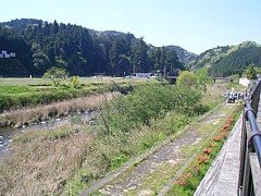 敷地の裏に宇陀川が流れており、川沿いの遊歩道でのんびり散歩が可能。付近の農道を歩くこともできる。 |