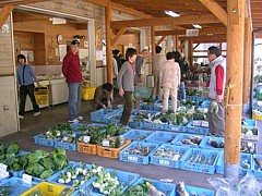 公称は大型車4台+普通車29台、狭いため休日の昼前後は慢性的に渋滞する。野菜売り場側にある駐車場に逃げよう。 |