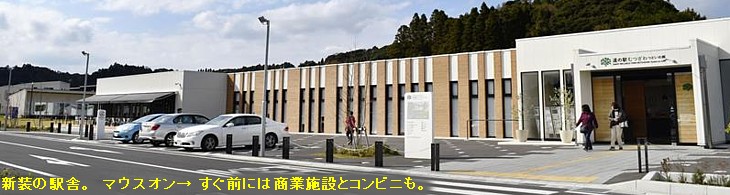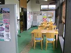 駅舎内の片隅に食卓テーブルが3セット置いてある。駅の営業中は利用できるが、常設かどうかは疑わしい。駐車場の先の川沿いに女ヶ堰農村公園、暖かな季節ならのんびり休憩できる。 |