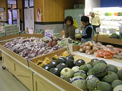 9〜18時、品揃えは野菜類がメインで魅力に欠ける。農産品と花鉢類は豊富だが、全般に価格は安くない。すぐ横にローソン、向い側に中型のショッピングセンター(D2併設)、信号を渡って200mほど先にセブンイレブンあり。 |