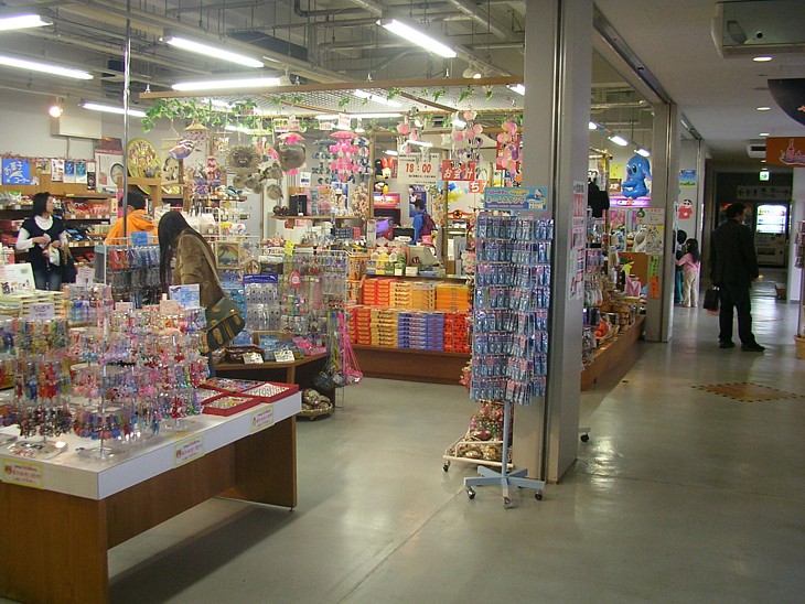 売店の前から休憩室の方向を。魚介類の売店はかなり広いが、普通の土産物売り場は狭い。