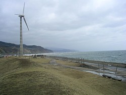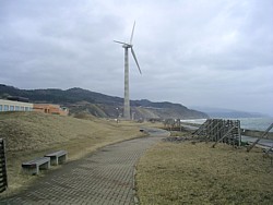 利用して132所帯分に相当する電力を供給する。塔の高さは50m、羽根は約20mの国産機だ。