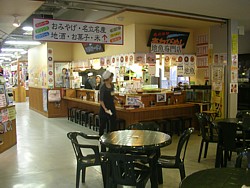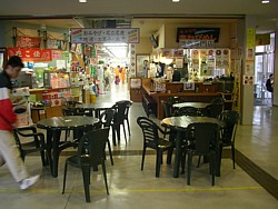 中&右: フードコート一角の店(名前忘れた)は地魚専門店と表示しながらメニューにはラーメンやカレーライスもある変な店。狭いカウンター席と通路に