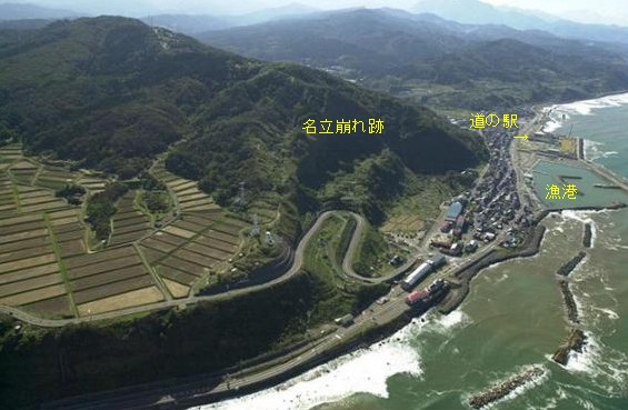 寛永四年(1751)の春にはマグニチュード7.2の大地震が発生し、崖崩れによって現在漁港のある小泊の民家80戸以上が水没し400人近い住民の大部分が死没した悲しい歴史も記録されている。この「名立崩れ」の痕跡は高さ140m・長さ600mの断崖となって今でも確認できる。