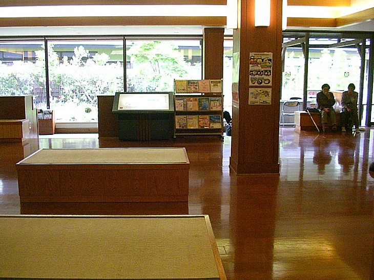 温泉のフロント周り。施設は豪華だが休日の午後に「温泉ツァー」の観光バスが立ち寄ったら最悪の混雑だ。