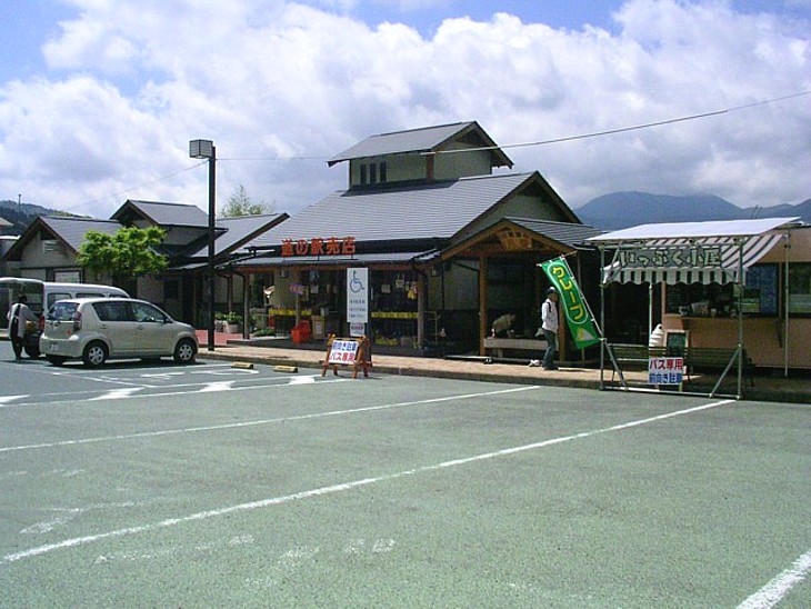駐車場左隅にトイレ・物販・足湯・軽食。道の駅の機能はこれが全て、長野の「ぽかぽかランド美麻」に近い。