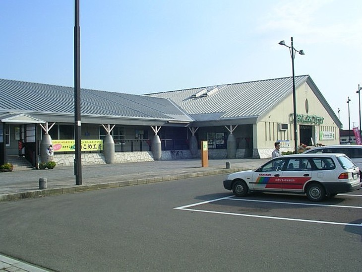 メイン駅舎の「こめこめプラザ」。左側が米加工用施設で右側に展示コーナーと物販と食事処がある。
