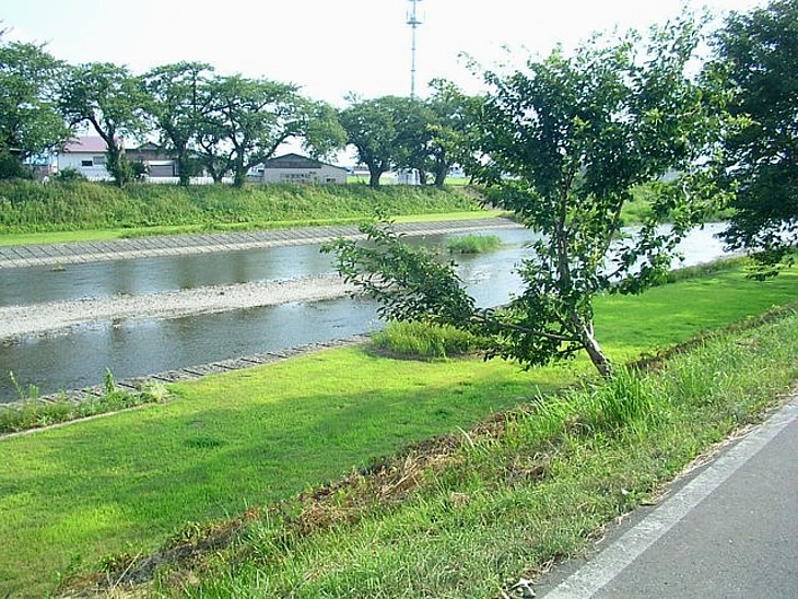 小川に沿って芝生と葉桜の緑が目に鮮やかだった。軽い散策向きで、春には花見も楽しめるだろう。