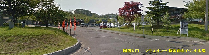 天気が良ければ丘の上にある花壇を囲んだ円形の百人テーブルがお薦め。東に広がる浪岡の町並みや遠くに連なる山々も遠望できる。その他、観光案内所を始め気軽に休憩できるスポットは駅舎の各所に散在している。 | |