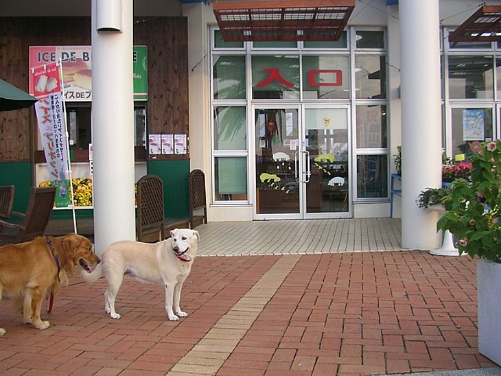 窓辺の観葉植物がトロピカルな雰囲気を演出している。今は亡き犬どもは何か話し合っているらしい。