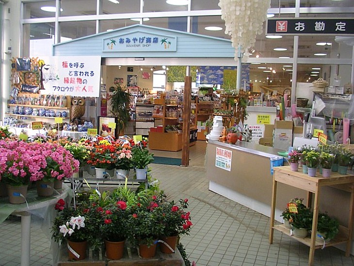 土産物売り場はごく一般的な品揃えで特徴には乏しい。季節の花鉢は豊富だが特に珍しくもないし。