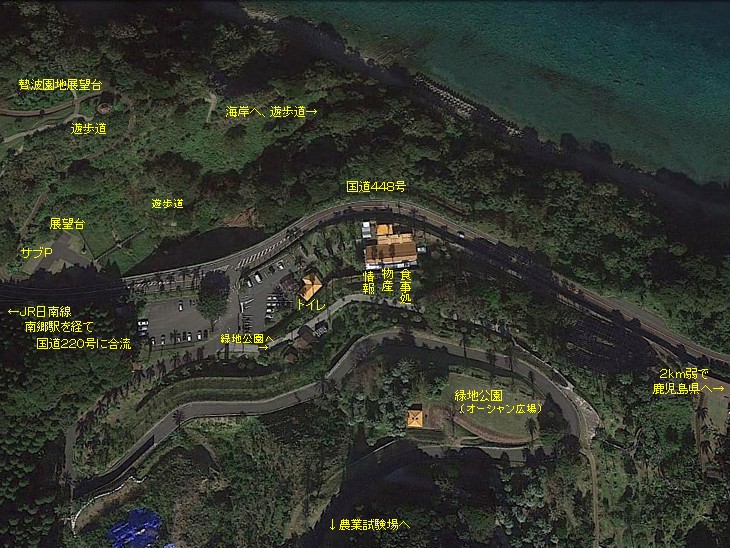 日南海岸で最も南国トロピカル雰囲気の豊かな駅。温泉が遠いのは実に残念!トイレは改善されただろうか?