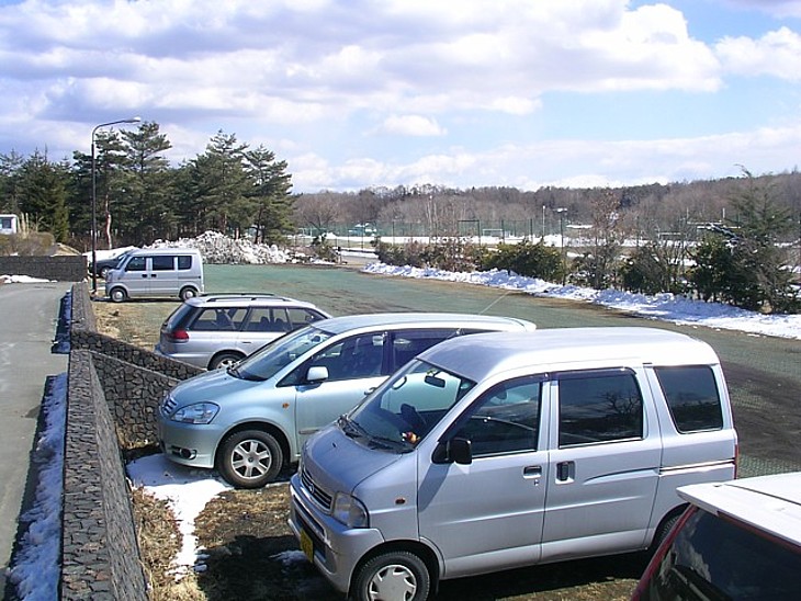 従業員用駐車場からグラウンド方向を。「普通の道の駅」ならP泊推奨スポットだが「なるさわ」はペケ。